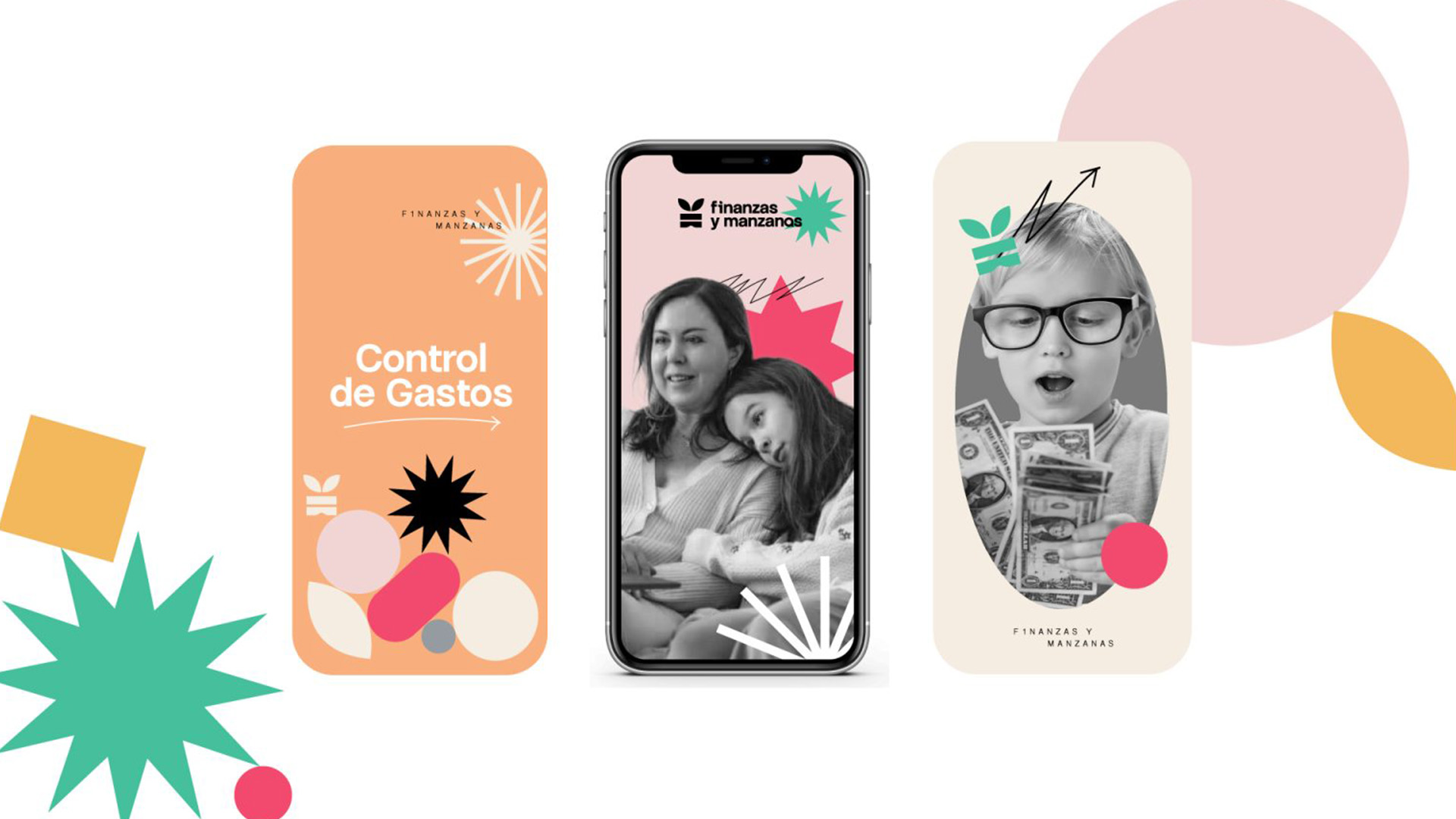 Through soft shapes, cheerful tones, and warm, friendly typography, the brand brings joy and clarity to topics that are often overwhelming. Finanzas y Manzanas proves that talking about money can be empowering, relatable, and even fun.