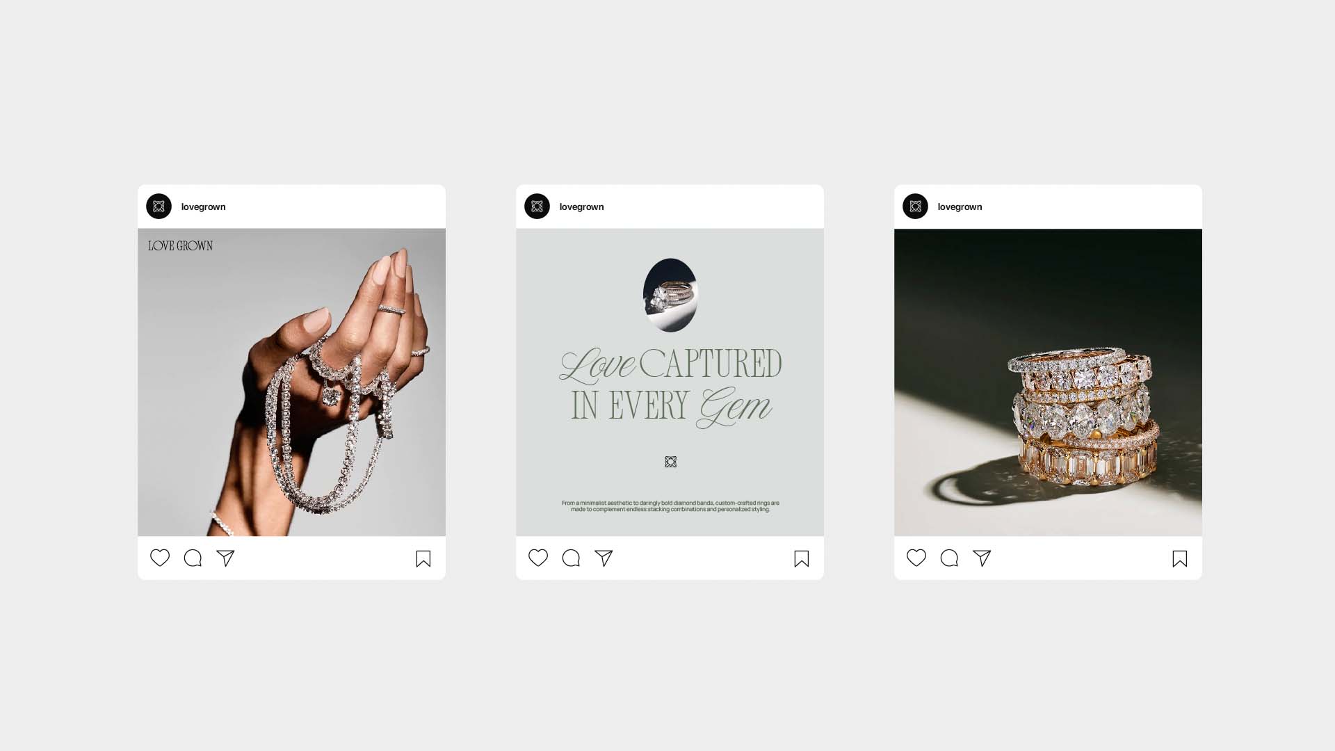 From brand marks to supporting elements, every detail was considered to ensure consistency and cohesion across digital and print. The final identity positions Love Grown as a brand that feels effortlessly luxurious—one that elevates the story of lab-grown diamonds through thoughtful, high-end design.