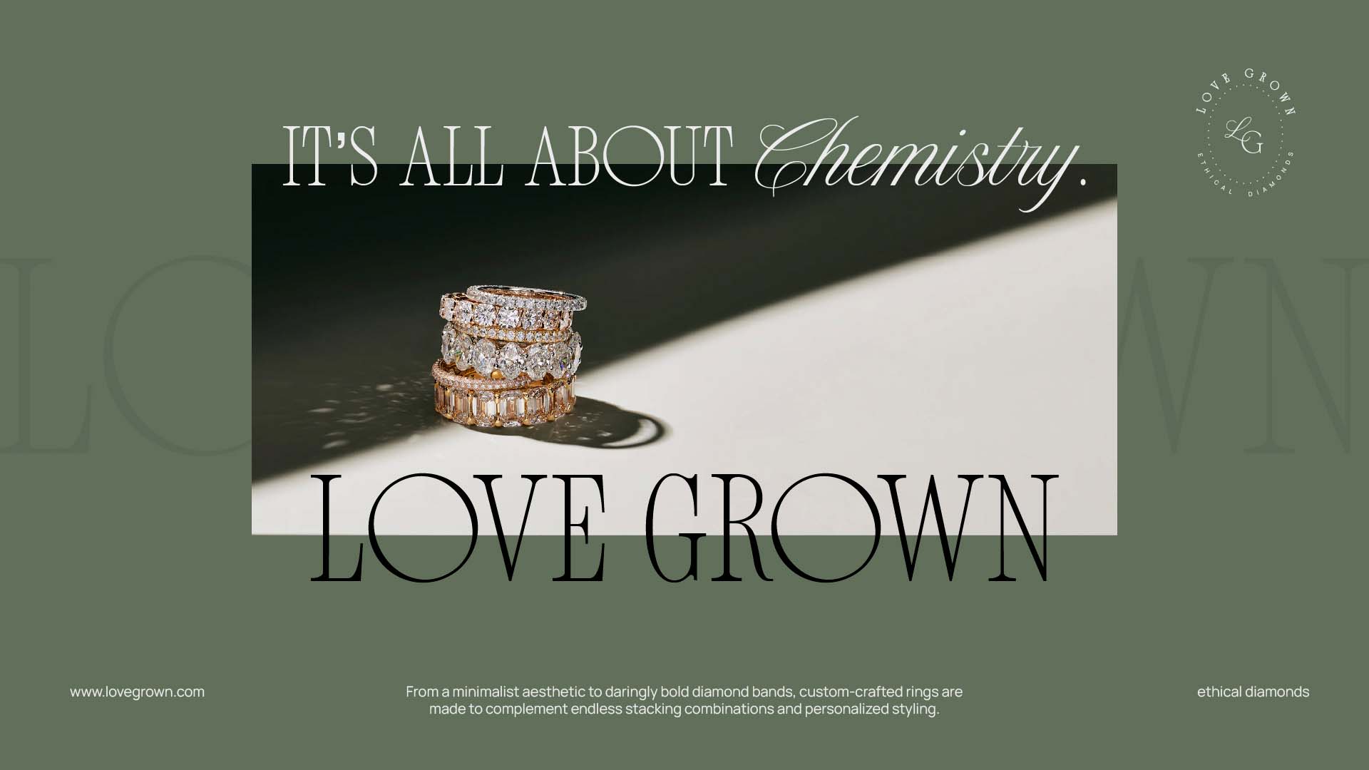 For Love Grown, a contemporary jewelry brand specializing in lab-grown diamonds, we crafted a brand identity rooted in elegance and conscious luxury. The challenge was to create a refined yet modern visual language that would resonate with an audience seeking exclusivity, beauty, and ethical value in equal measure.